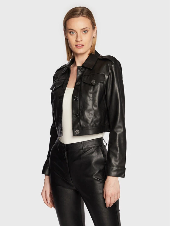 ΧΟΝΔΡΙΚΟ ΕΜΠΟΡΙΟ ⭐ DKNY Γυναίκες Δερμάτινα Μπουφάν Μπουφάν από απομίμηση δέρματος DD2G4315 Μαύρο Regular Fit 🤩