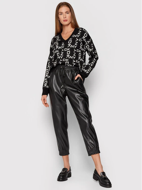 Flash Sale ❤️ DKNY Γυναίκες Δερμάτινα Παντελόνια Παντελόνι από απομίμηση δέρματος P1HKUKA4 Μαύρο Regular Fit ⭐