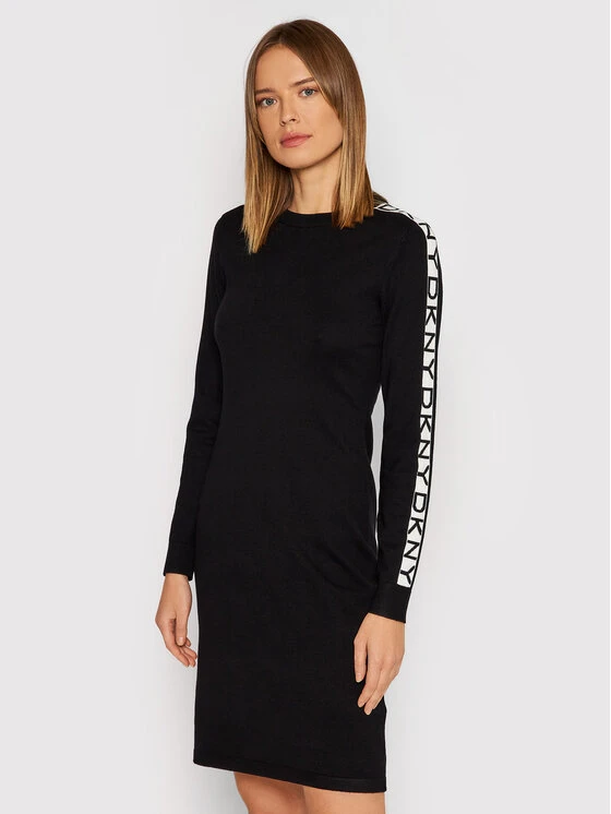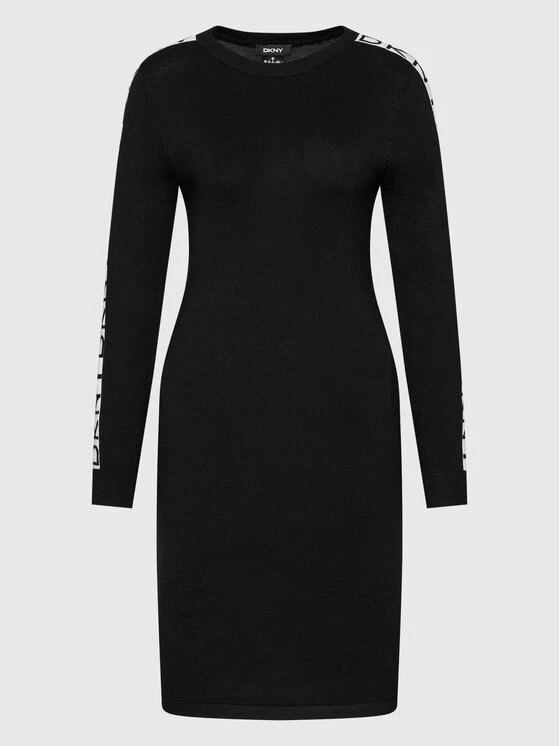 Καλύτερη πώληση 🔥 DKNY Γυναίκες Πλεκτά Φορέματα Φόρεμα υφασμάτινο DD1HN711 Μαύρο Regular Fit 🧨