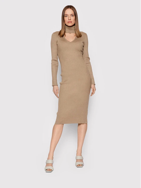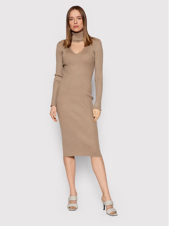 Εξοδος 🛒 DKNY Γυναίκες Πλεκτά Φορέματα Φόρεμα υφασμάτινο P1KUAPA0 Καφέ Slim Fit 😍
