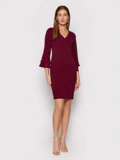 Πολύ καλή προσφορά ✔️ DKNY Γυναίκες Πλεκτά Φορέματα Φόρεμα υφασμάτινο DD1HN931 Μπορντό Slim Fit 🔔
