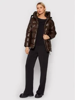 Προώθηση 🎁 DKNY Γυναίκες Χειμωνιάτικα Μπουφάν Μπουφάν πουπουλένιο DL1MUF63 Καφέ Regular Fit 👍